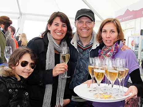 Ein Gläschen Lanson Champagner gefällig? Entertainer und Pianist Joja Wendt und Gattin Birte mit Tochter Elisa (10) - die sagte nein danke |
