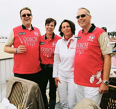 Eine standesgemäße Vertretung schickte Jürgen Gosch durch seine rechte Hand Michael Lorenzen (re.) und das Team im extra für den Beach Polo World Cup Sylt kreierten Outift |