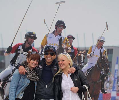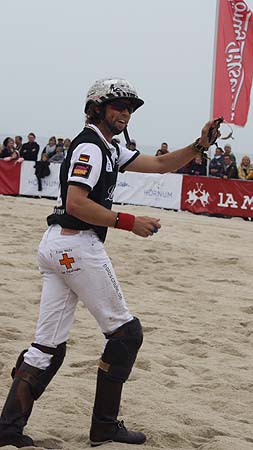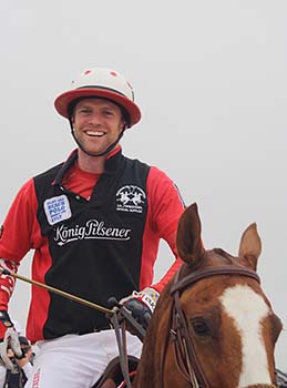 Foto li.: Ihn wir das Königs Pilsner-Team nicht vergessen. Der smarte Brite Tim Ward schoss das entscheidene Siegertor und somit Königs Pils zum Sieger des 6. Beach Polo World Cups Sylt. |