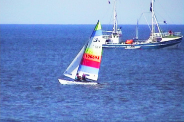 Denn die Regatta vom letzten Jahr ging als "Kentermeisterschaft" in die Sylter Catamaran-Geschichte ein. Nach acht spannenden Regattaläufen im anspruchvollen Sylter Revier mit schwierigen Strömungsverhältnissen standen die Sieger fest. In der Hobie-Klasse 16 siegten die Berliner Georg Backes und Simone Monreal ganz haarscharf vor den Brüdern Detlef und Reinhold Mohr aus Hamburg. Als beste Sylter belegten Svenja und WillyTrautmann Platz 22. Vom Schiff Downtown hatte die Regattaleitung das gesamte Geschehen unter Kontrolle. |