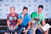 Bereits im Frühjahr hatten sich diese beiden Fahrer im Rahmen des Rollei Summer Openings packende Wettkämpfe geliefert und am Ende punktgleich den Titel "Funboard Racing Champion 2014" geteilt. Der Volvo Surf Cup brachte nun die Wiederauflage dieses spannenden Duells. Vincent Langer konnte bei fünf Wettfahrten als Sieger ins Ziel fahren. Kornum sicherte sich vier Laufsiege. In der Gesamtwertung nach neun Wettfahrten erobert sich Langer mit 9,0 Punkten die Spitzenposition. Mit 10,0 Punkten folgt der Däne Kornum denkbar knapp dahinter auf Platz zwei. Dabei sah es zwischenzeitlich für den Kieler Langer gar nicht so gut aus. Nach einem vierten Platz im Auftaktrennen lief er lange einem Rückstand hinterher. Erst am vorletzten Veranstaltungstag konnte er mit beeindruckenden Siegen in den letzten beiden Rennen die Führung erobern und sich damit den Meistertitel sichern. Vincent Langer: „Mir fällt ein Riesenstein vom Herzen. Ich war in diesem Jahr zum ersten Mal in der Rolle des Verteidigers. Das war nervenaufreibender und anstrengender als alles was ich bisher gemacht habe. Jetzt bin ich natürlich über glücklich die Meisterplakette 2014 in den Händen zu halten.“ |