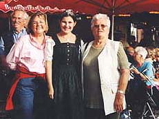 | Weinprinzessin Janine Keicher (2.v.r.) war eine Attraktion des 3. Winzerfestes auf Sylt, das nicht zuletzt wegen des schönen Wetters eine erfolgreiche Neuauflage feiern durfte. Und dies sicher auch zur Freude von Westerlands Bürgervorsteherin Gerda Wimmer ( re.), die mit Gatte Hartwig und Sylke Marie Nielsen (2.v.l.) ein paar unbeschwerte Stunden inmitten der Weinliebhaber an der Westerländer Kurpromenade verbrachte. |