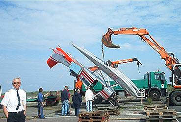 ![]() Schwieriges Wendemanöver beim Entladen der Amphibie vor der Sylter Flugwerft. Mit vor Ort, Herr Friedrich, von der Bundesstelle für Flugunfalluntersuchung (BFU) |
