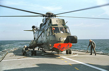 ![]() Der auf Helgoland stationierte "Sea-King" (SAR- Hubschrauber kam zu dem Flughafenfest auf die Insel Foto: Marine |