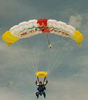 sinkend, von ganz oben zu bewundern per Tandemfallschirmsprung mit der