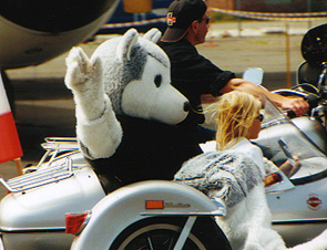 ![]() Zum Abheben: Motorräder mit Beiwagen des Sylter Harley- Clubs sausen mit den Kids über den Flughafen |
