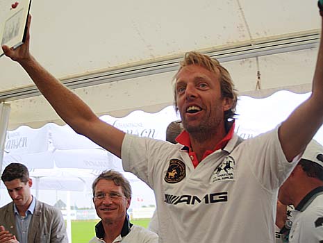 In der langen Tradition des Sylter Polosportes seit dem Start 1986 auf dem Segelflughafen Gelände zwischen Keitum und und Munkmarsch hat Petrus nie die Sindflut geschickt. Nun aber öffnete der Himmel die Schleusen und verwandelte das Polofeld in eine Wattlandschaft bei Flut. Und dann gab es zum ersten Mal Original Wasserpolo. Bis zur Halbzeit des Finales der German Polo Masters Sylt 2012 um den Sal. Oppenheim Gold Cup kamen insgesamt über 4.500 Zuschauer auf dem Poloplatz in Keitum voll auf ihre Kosten. Die sechs Teams zeigten am Finaltag des Turniers erneut Polosport auf internationalem Spitzenniveau. |