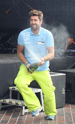Vincent Langer jagt seine Mitbewerber mit Champus Fotos: Choppy Waters/VivaSylt Image World |
