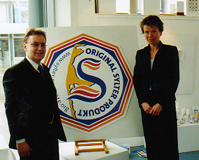 Stolz präsentiert Lars Schmidt das neue Siegel für "Sylter Produkte". Christiane Liedtke entwarf die markante acht-eckige Form des in den Inselfarben gehaltenen Logos |