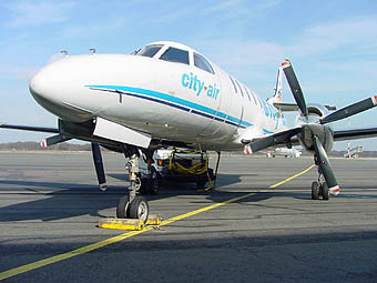 ![]() Schnittig und superleise wird jetzt die Insel Sylt mit dem Metroliner der neuen Fluggesellschaft „city-air“ angeflogen. Das Turbinenflugzeug hat 19 Passagierplätze und erreicht eine Höchstgeschwindigkeit von 570 Stundenkilometern. |
