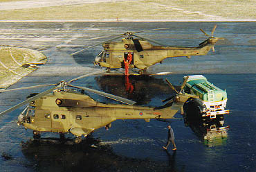 als drei Helikopter der Royal Air-Force (RAF) vom Typ Puma im dicken