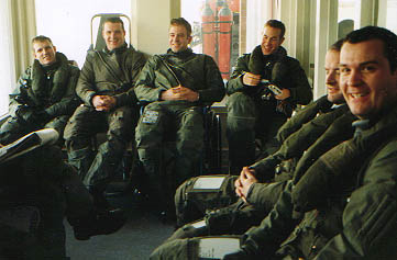 an Bord jeweils sechs Besatzungsmitglieder. Rekruten und Offiziere gönnen