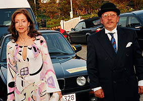Gut gelaunt: Benita Fürstin zu Schaumburg Lippe wird wie seit vielen Jahren von Sylt-Butler John zum Partyort geleitet |