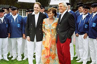 ![]() Verlegerin Friede Springer, ganz in weiß, und Ernst Langer mit neuer Freundin |