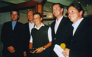 ![]() Top-Stimmung auch bei der Preisverleihung, bei der es kameradschaftlich fröhlich herging. Der jüngste Teilnehmer Christian Kappelhoff-Wulff (Mitte) erhält hier stolz den Preis für "Nearest to the pin" |