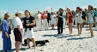 Der urbayrische Togal Konzern-Chef Günther Schmitt feierte seinen 85 jährigen Geburtstag nicht im Garten seiner „Reetdachhütte“ sondern zünftig am Strand der Sansibar in Strandkörben. Extra eingeflogen wurde ein hübsches Saxofon-Quartett im Mini-Dress, die nach dem Auftritt sofort zurück nach München flogen. Der engagierte Tierschützer, der gegen Tierversuche kämpft, kam mit seinem Roll Royce (Oldtimer Silver Cloud in poppigem lila) und seinen zwei Dackeln. |