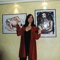 Ann Hampton Callaway nahm sich in der Pause zwischen CD´s signieren und Autogramme geben, ganz spontan die Zeit für ein Foto für VivaSylt vor den im Kaamp Hüs ausgestellten Bildern des Künstlers Klaus Hahn. |
