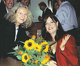 Nach dem Autogrammschreiben gab es Sonnenblumen für die Lady aus New York City: Die Leiterin der Kampener Kurverwaltung Birgit Friese (li. ) überreicht Ann Hampton Callaway persönlich einen sonnigen Blumenstrauß |