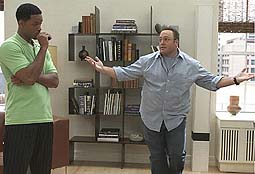 Der "King of Queens" Kevin James als hoffnungslos verliebter Steuerberater Albert mit seinem Date Doktor Hitch (Will Smith) |