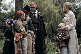J. M. Barrie (Johnny Depp) mit der Witwe Sylvia Llewelyn Davies (Kate Winslet) und ihren vier Söhnen Jack, George, Michael und Peter |